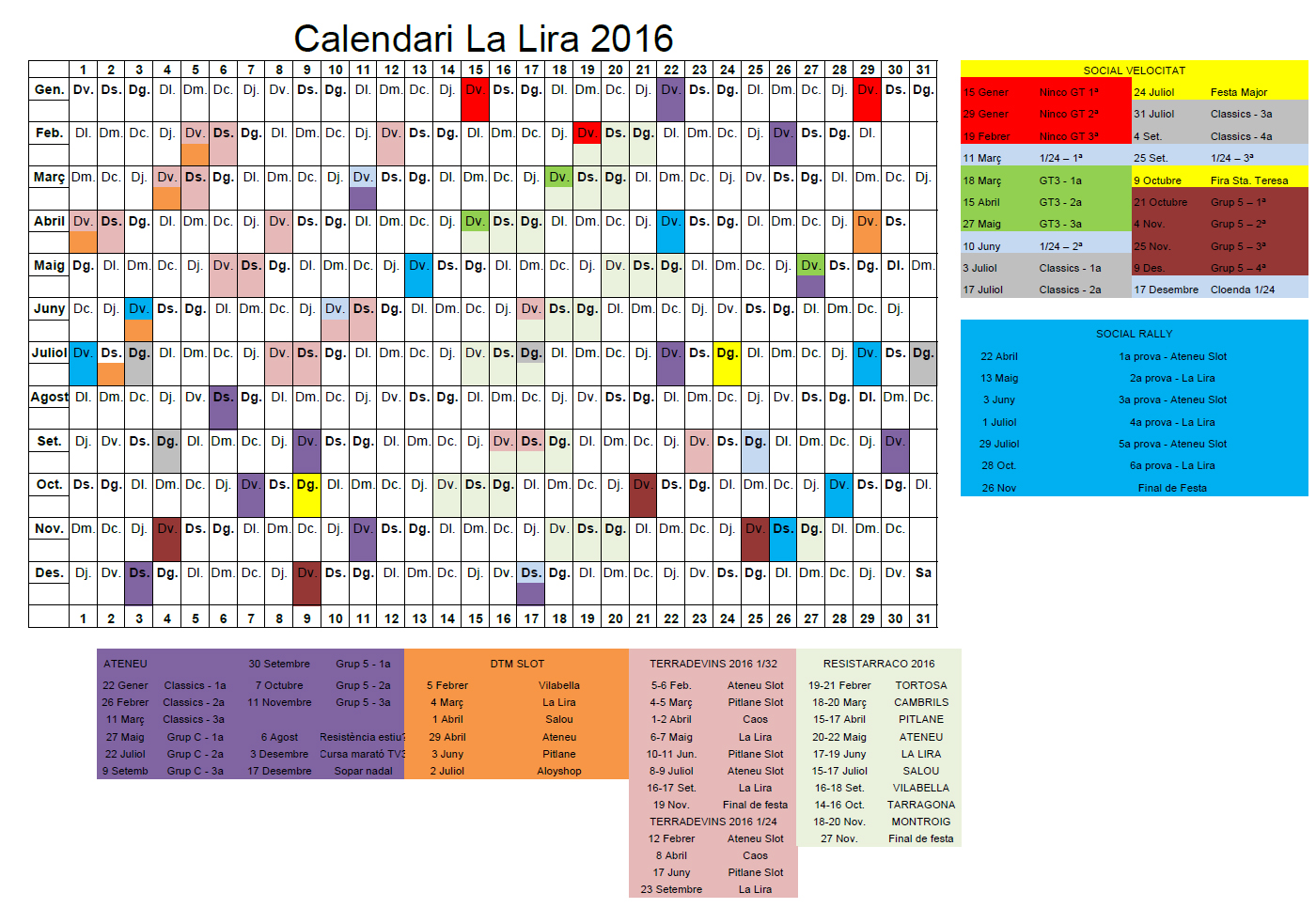 Després de la reunió del passat 7 de gener ja tenim definit el calendari 2016 a falta de només alguns detalls.