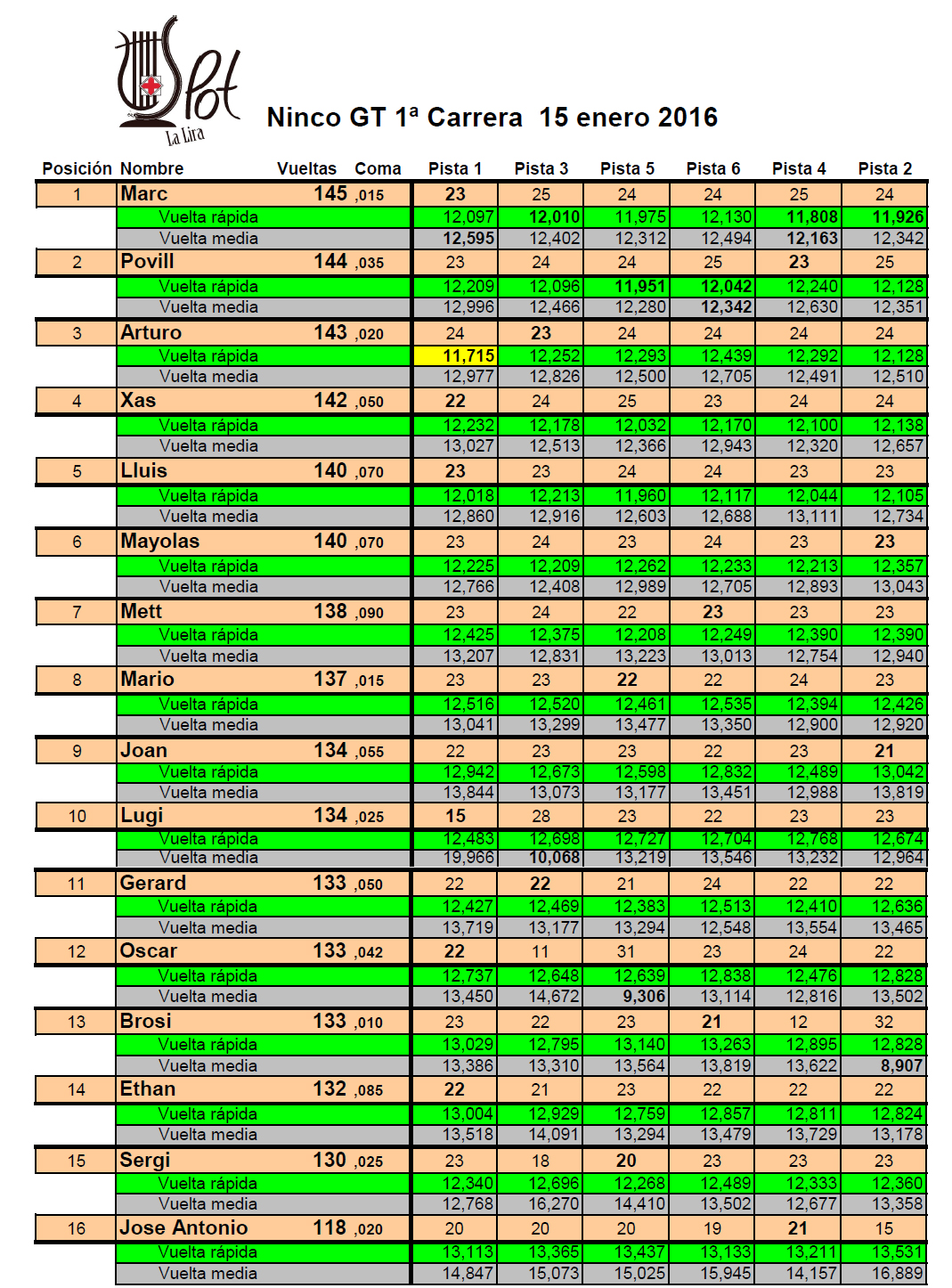 El 15 de gener va començar oficialment la temporada a La Lira amb la primera cursa de la categoría Ninco GT i el nou format, pel qual els campionats no s’alternen, si no que es faran totes les curses seguides, excepte amb els 1/24.