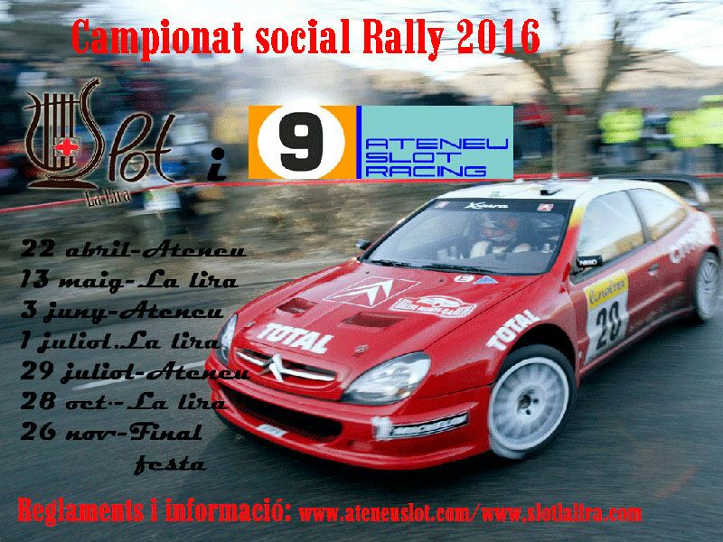 El proper dia 28 d’Octubre al vespre disputarem la sisena i última prova puntuable per al campionat social de Rally 2016 conjunt entre Aloyshop La Lira i l’Ateneu Slot Racing.