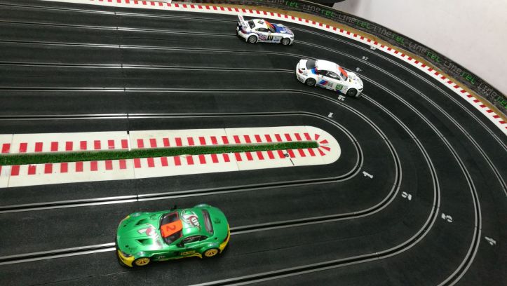 l’Óscar i el Luis es van cansar de tant patiment i als dos darrers carrils, amb tot perdut ja, van canviar al cotxe reserva, el de la pole, marcant ambdós els seus millors carrils amb diferencia, les seves millors voltes ràpides i el Luis, a més, la volta rápida de cursa amb 12’06, millorant el 12’19 que va fer l’Arturo amb millors pneumàtics. Aixó va demostrar també que la decisió de no correr amb aquest cotxe va ser bona ja que posiblement haurien guanyat però gràcies a un cotxe molt superior, encara que reglamentari, que probablement hauria desvirtuat una cursa de una categoria que es caracteritza per la seva igualdat.