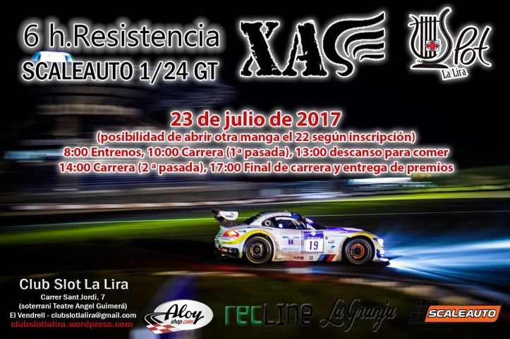 Com cada any, el Slot Club La Lira organitzarà un event especial amb motiu de les festes majors de El Vendrell. Enguany hem volgut canviar una mica la tónica dels darrers anys i farem una resistencia de 6 hores amb els espectaculars GT a escala 1/24 de Scaleauto.