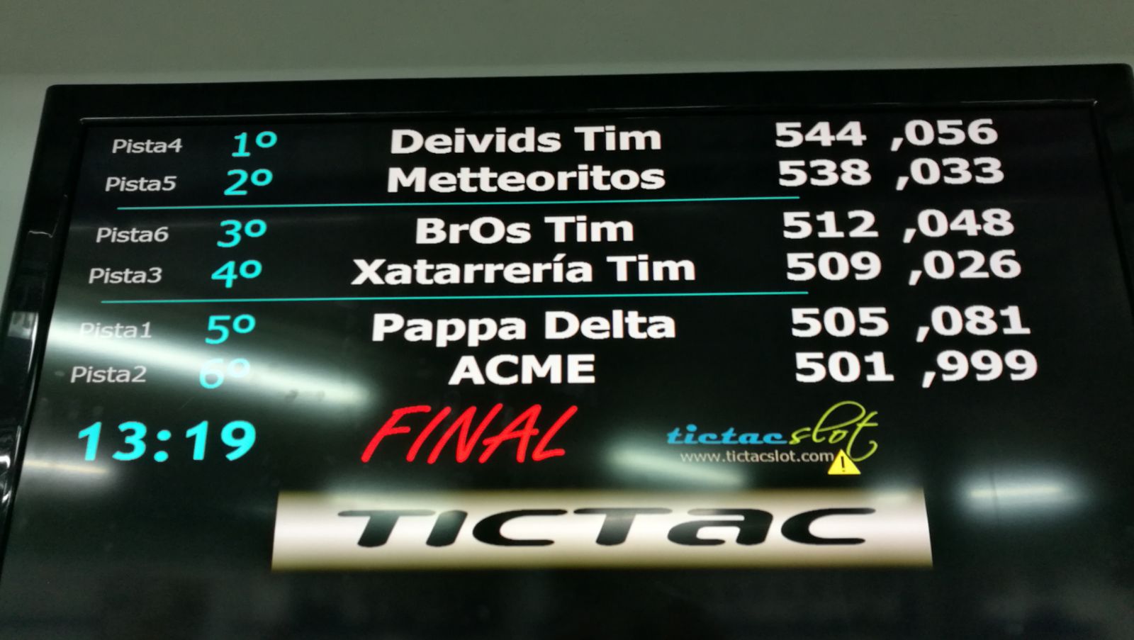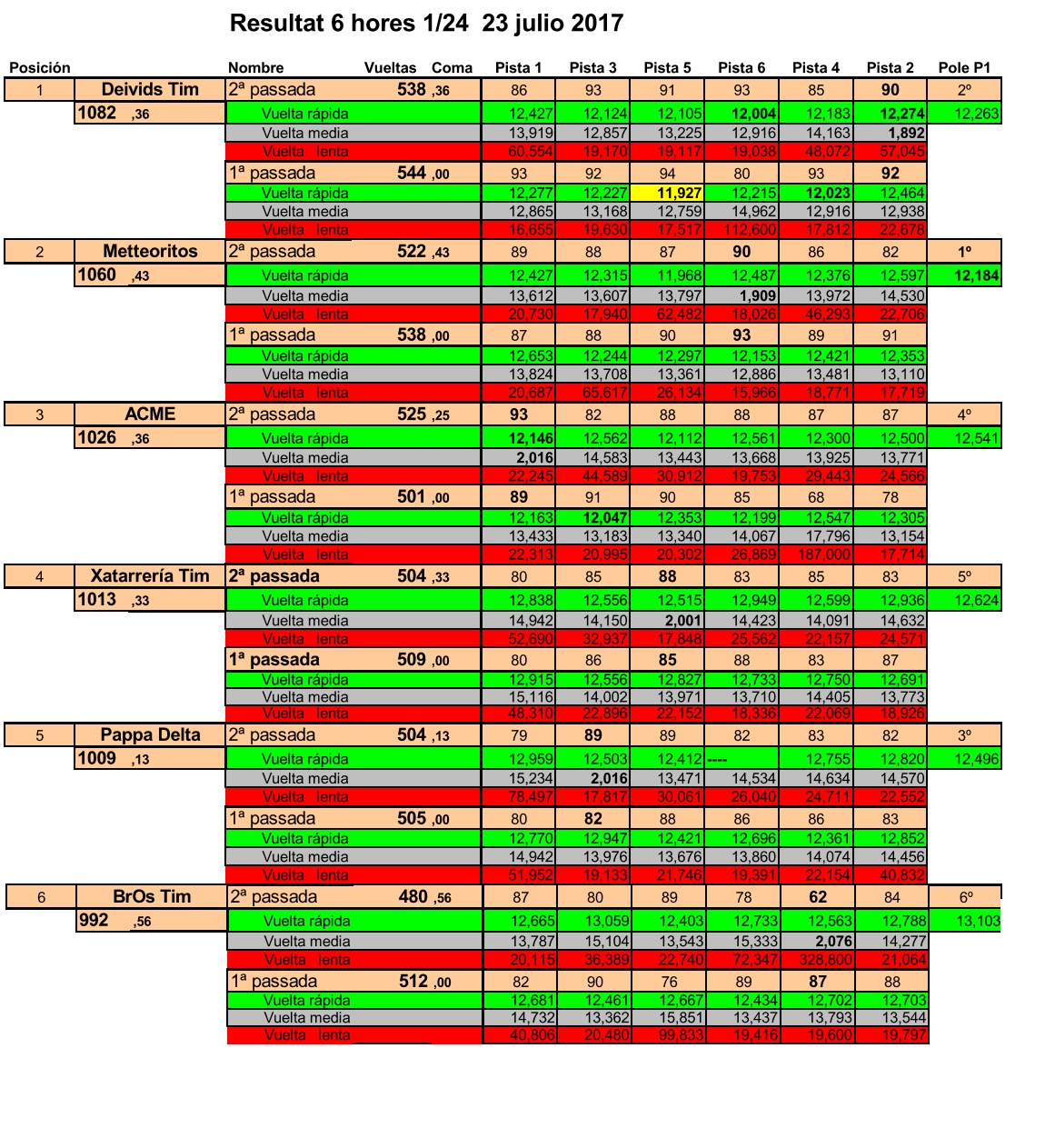 Mentres uns i un altres canviaven o no i es barrejaven en lluites per la tercera posició, els ACME iniciaban una remontada que els portaba a la tercera posició final, sent segons de la tarda i l’ùnic equip en fer més voltes a la tarde que al matí.