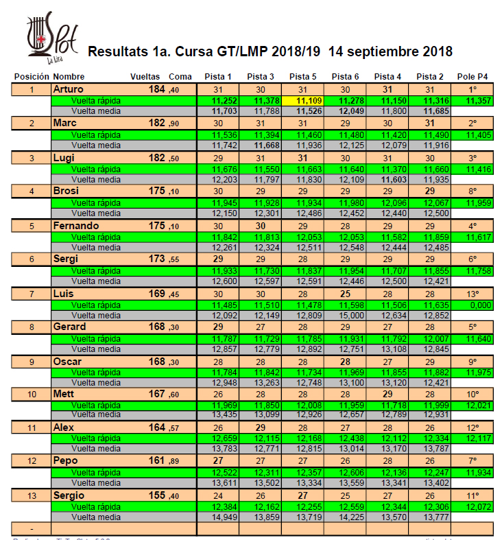 La nova temporada 2018/2019 va començar al Slot Club La Lira el passat 14 de setembre amb 13 pilots i moltes ganes de tonar a gaudir del nostre hobby.