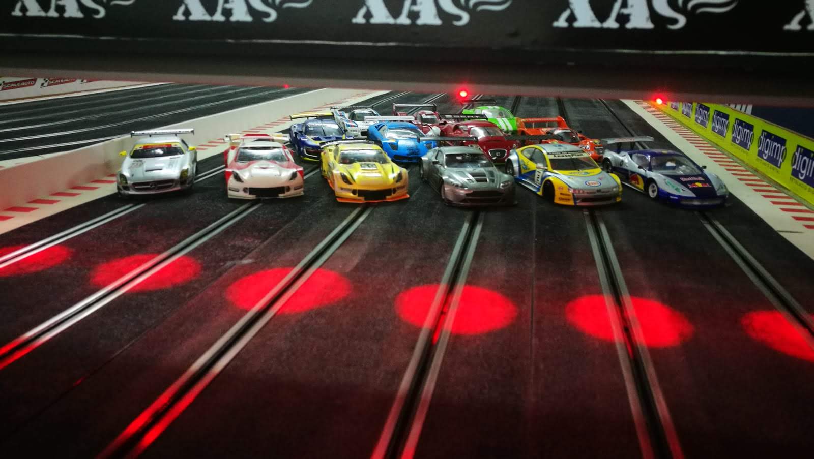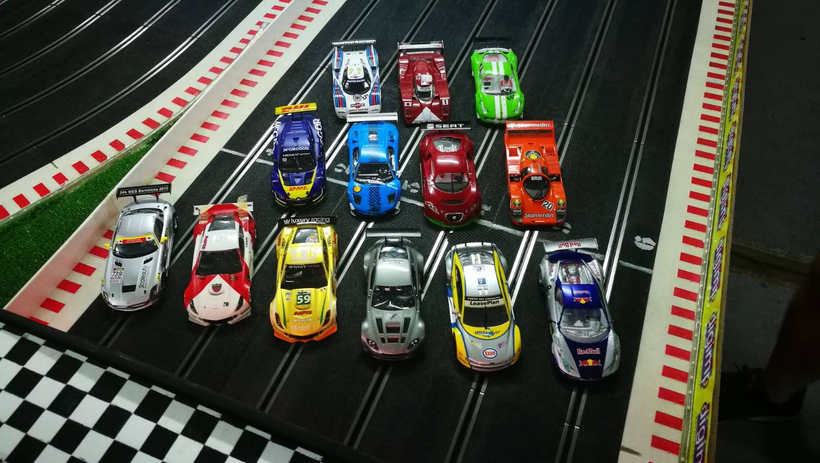 La primera màniga va estar composada per Alex Guillén (Renaut RS01 SCX amb xassís 3D), Sergio (Ferrari Black Arrow), Mett (Lambo Diablo Black Arrow), Óscar (Seat Cupra GT amb xassís 3D), Brosi (Porsche 956 Slot.it), Pepo (Mercedes SLS Scaleauto) i Sergi Casanova (Corvette C7R Scaleauto. Com veieu, una mániga molt variada amb 7 cotxes molt diferents.