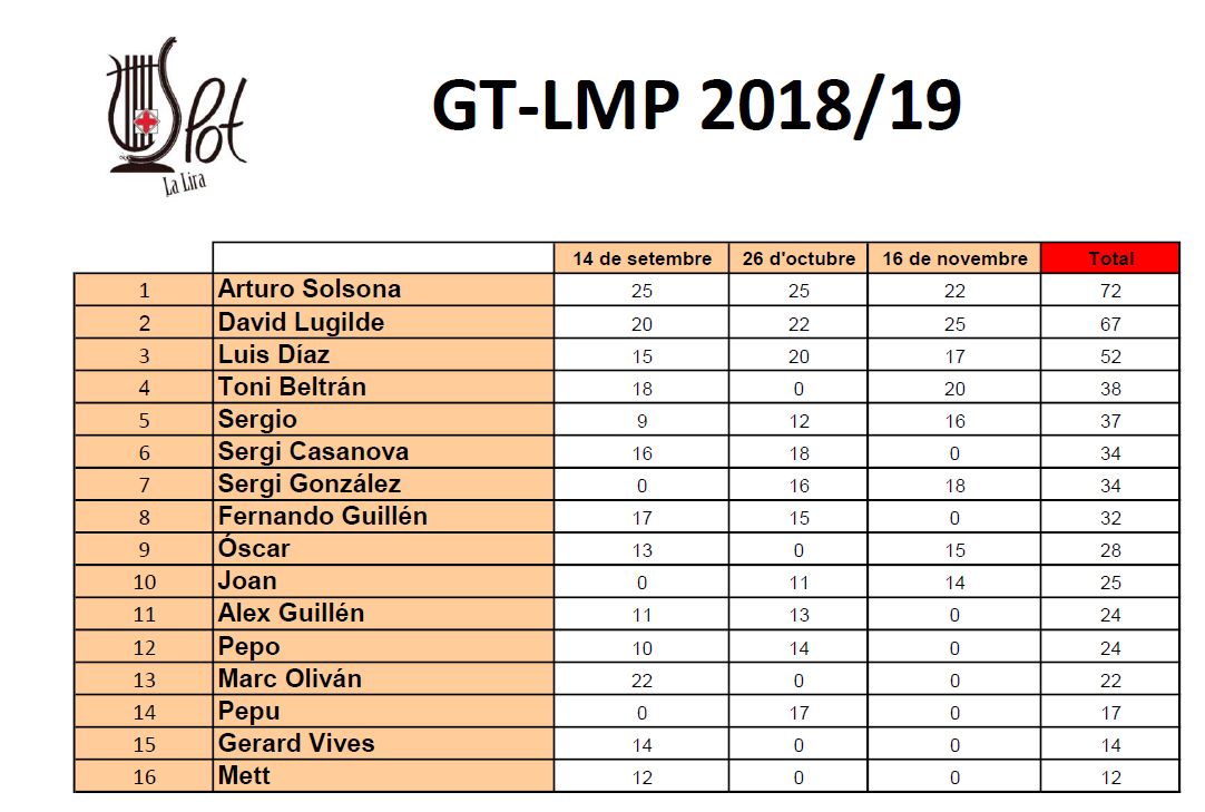 D’aquesta maneras, el nou campió de GT/LMP es el Arturo, amb dos victories sobre tres posibles, amb el Lugi sots-campió i el Luis tercer, beneficiat pels zeros d’alguns pilots.