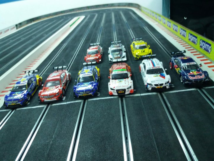 Així, 14 pilots participaven a la pole que va guanyar l’Adria Pujol amb un Mercedes de Scalextric, segon y tercer, separats per només una milèsima, van ser Ramón Díaz i Luis Díaz (no, no son germans), respectivament.