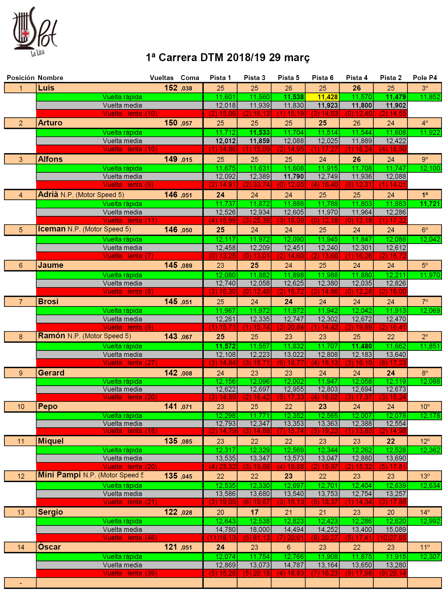 Aclarar que el N.P. que veureu a la classificació vol dir que aquests pilots ni puntuen ni bloquejan punts per correr amb un motor diferent al homologat per a aquest campionat.