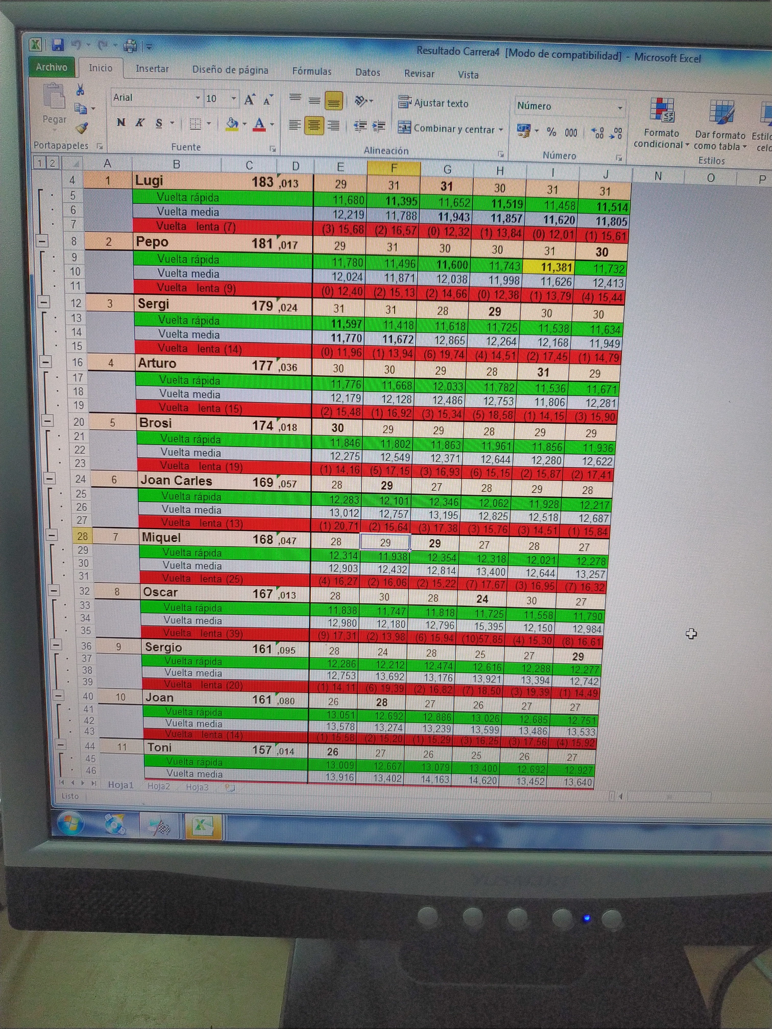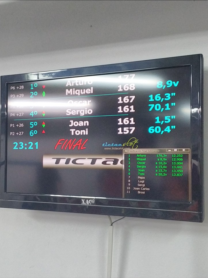 El ritme el va marcar Arturo des de l’inici amb molta regularitat i pujant finalment a una quarta posició final. En segon i tercer lloc varen quedar el Miquel i l’Oscar amb només una volta de diferència. El quart i cinquè respectivament van ser Sergio i JOan tots dos dins la mateixa volta i en sisena posició el Toni que dia a dia va millorant.