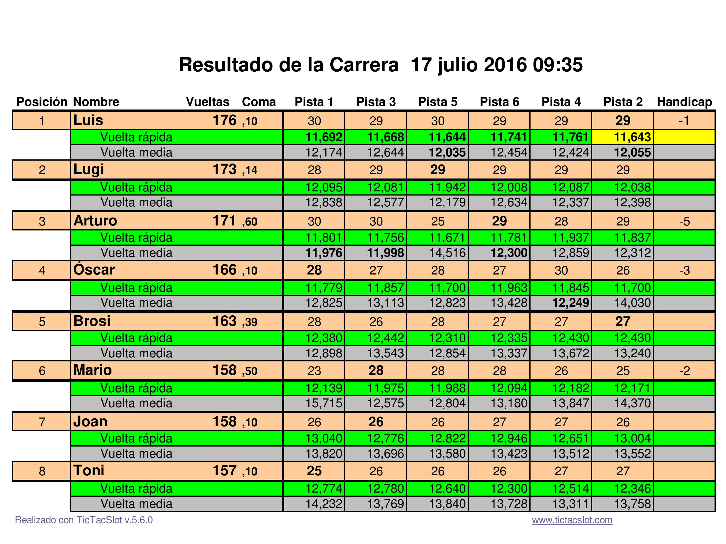 1ª Cursa, 10 de juliol de 2016