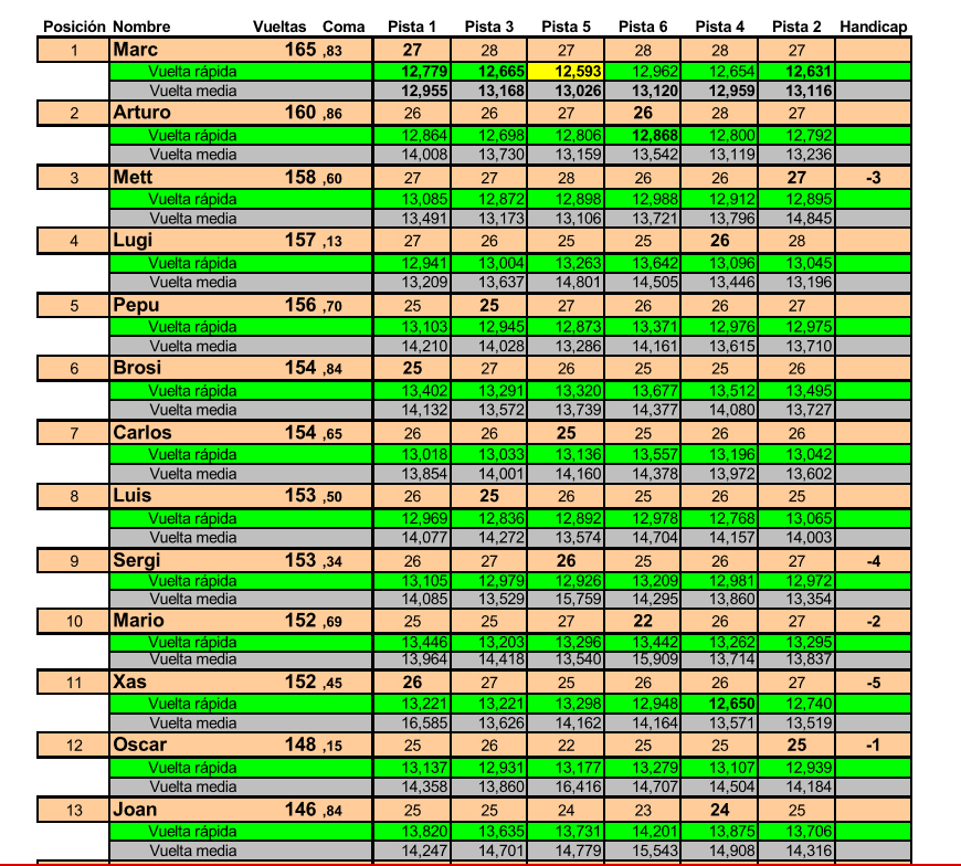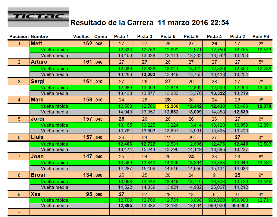 Resultats 1ª Cursa