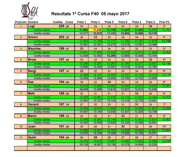 Resultats F40 Policar 2017 Descarregar resultats 3ª Cursa F40 en PDFDescarregar resultats 2ª Cursa F40 en PDF Descarregar resultats 1ª Cursa F40 en PDF Comparte: Haz clic para compartir en X (Se abre en una ventana nueva) X Haz clic para compartir en Facebook (Se abre en una ventana nueva) Facebook Me gusta Cargando...