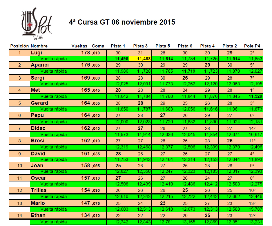 Resultats GT3 2015 4ª Cursa GT 2015 en PDF 3ª Cursa GT 2015 en PDF 2ª Cursa GT 2015 en PDF 1ª Cursa GT 2015 en PDF Comparte: Compartir en X (Se abre en una ventana nueva) X Comparte en Facebook (Se abre en una ventana nueva) Facebook Me gusta Cargando...
