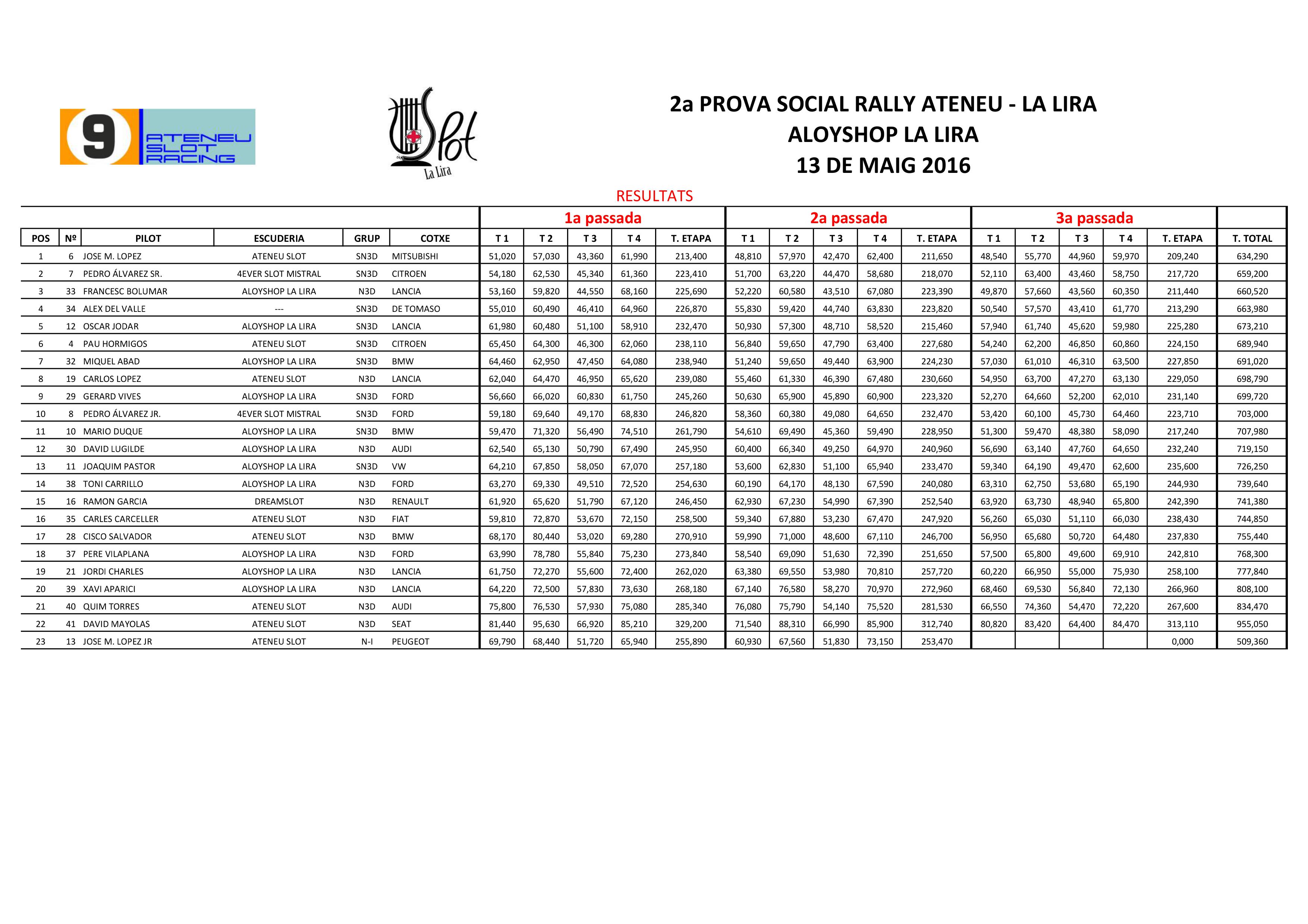 2ª Cursa Social Rallye 2016, Aloyshop La Lira, 13/05/2016