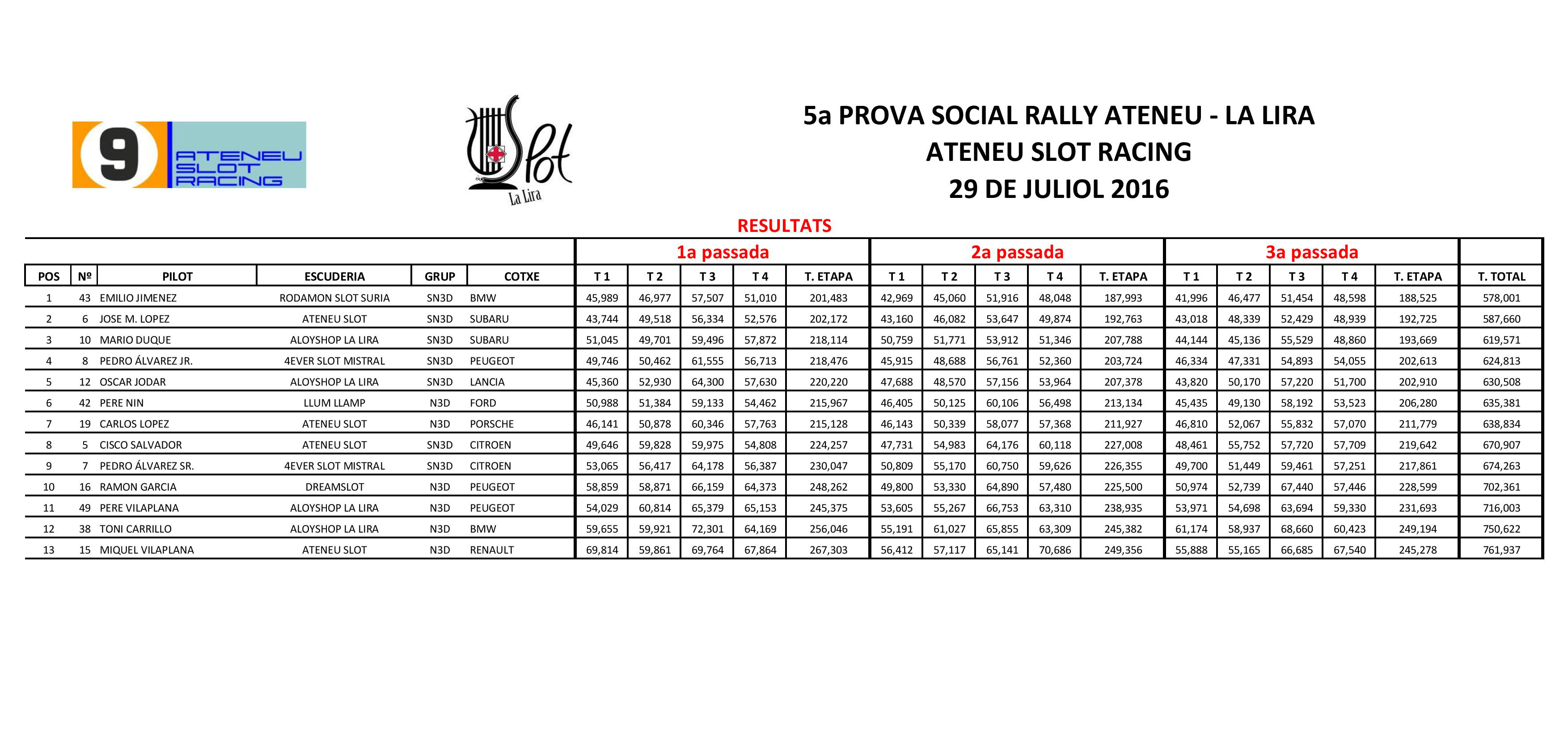 5ª Cursa Social Rallye 2016, Ateneu Slot Racing, 29/07/2016